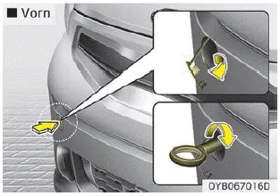 4. Bauen Sie die Abschleppöse nach Gebrauch ab und verschließen Sie die Öffnung mit der Blende.