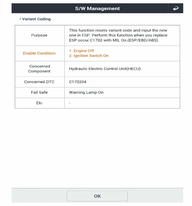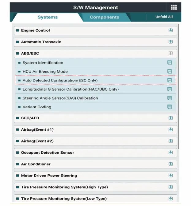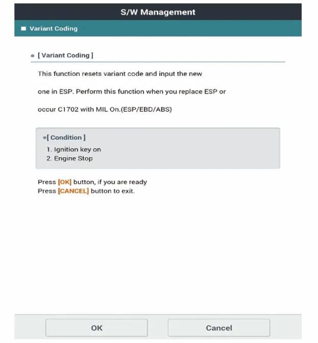 "Fahrzeugmodell" und "ABS/ESC" auf dem KDS-Auswahlbildschirm wählen, dann OK drücken.