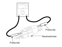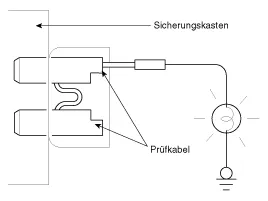 Bei der Prüfung auf einwandfreien Stromfluss oder Spannung an Anschlussbuchsen mittels eines Spannungsprüfers ist die Prüfsonde kabelbaumseitig einzuführen. Handelt es sich um Schutzkontaktstecker, so muss ist die Prüfsonde durch die Öffnung in der Gummikappe einzuführen, bis sie Kontakt zur Anschlussklemme hat. Hierbei sicherstellen, dass die Isolierung der Kabel nicht beschädigt wird.