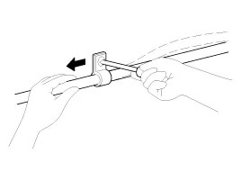 Bei Arbeiten im Motorraum muss die Haubenstützstrebe in die Öffnung in der Nähe der Vorderkante eingeführt werden, um ein Herabfallen der Motorhaube und mögliche Verletzung zu verhindern. Sicherstellen, dass die Unterstützungsstrebe vor dem Schließen der Motorhaube gelöst ist. Vor der Abfahrt nochmals prüfen, ob die Motorhaube fest verriegelt ist. |