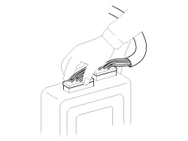 Befestigen Sie die Kabelbäume mit Hilfe von Kabelschellen, damit diese nicht durchhängen. Lassen Sie jedoch bei allen Kabelsträngen, die zum Motor oder anderen vibrierenden Teilen des Fahrzeugs führen, etwas Spielraum, jedoch nur soviel, dass der Kabelstrang nicht durch die Motorvibrationen mit umgebenden Teilen in Kontakt kommen kann. Sichern Sie den Kabelstrang danach mit einer Schelle.