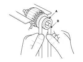 Kollektor-Außendurchmesser prüfen. Wenn der Durchmesser die Spezifikation unterschreitet, Anker ersetzen.