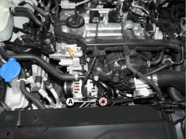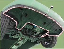 Befestigungsschrauben lösen, dann die untere Motorraumabdeckung (A) abnehmen.