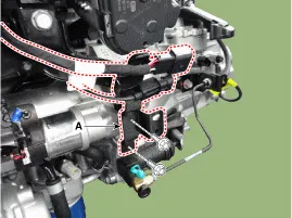 Befestigungsschraube (A) der Kühlmittelrücklaufleitung ausschrauben.
