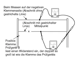 Ist ein Leiter im Bereich zwischen Mittelteil und (-)-Klemme durchgebrannt, zeigt das Voltmeter 0 V an.
