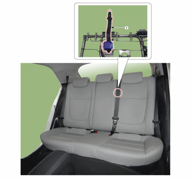 Bauteile und bauteile-Übersicht BAUTEILE-ÜBERSICHT 1. Rücksitzgurtschloss [rechts] 2. Rücksitzgurtschloss [links] Reparaturverfahren AUS- UND EINBAU Bei der Installation der Sicherheitsgurte darauf achten, den Gurtstraffer nicht zu beschädigen.