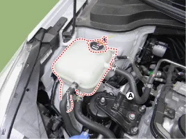 Ausgleichsbehälterschlauch (A) sowie den Turboladerwasserleitungsschlauch (B) entfernen.