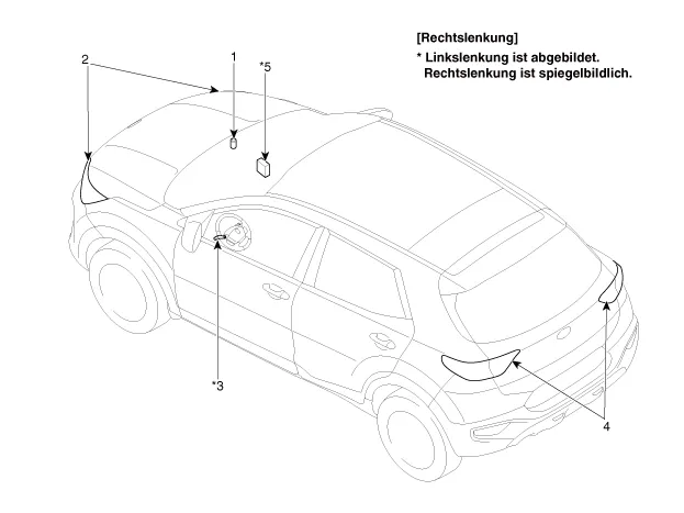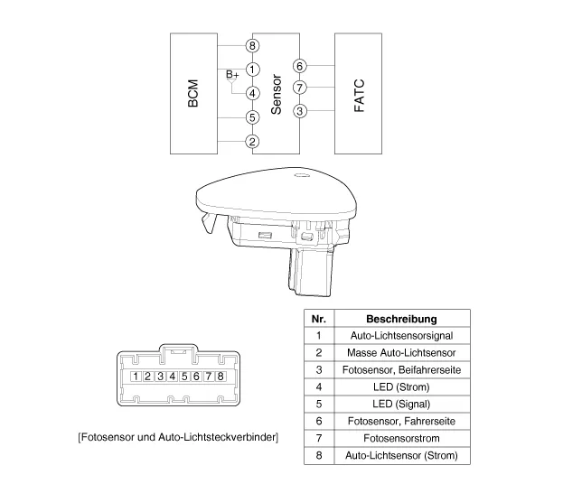 | 1. AUTO Licht-Sensor 2. Scheinwerfer 3. Lichtschalter (mit Licht-Automatik) |