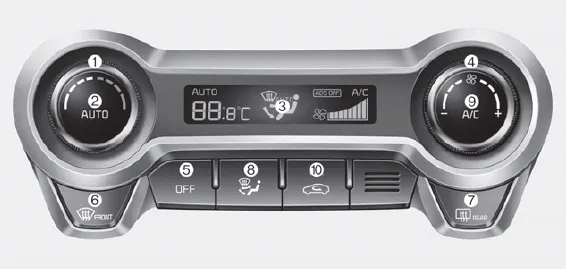 1. Drücken Sie die AUTO-Taste. Lüftungsmodi, Gebläsedrehzahl, Frischluft-/Umluftschaltung und die Klimaanlage werden automatisch von der eingestellten Temperatur gesteuert.