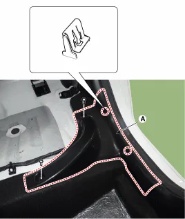 Hintere Türschwellerverkleidung (A) mit einem Ausbauwerkzeug entfernen.