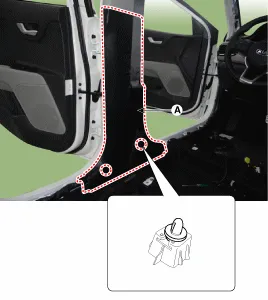 Vordere Türeinstiegsverkleidung (A) mit einem Ausbauwerkzeug entfernen.