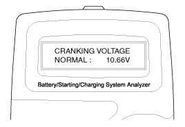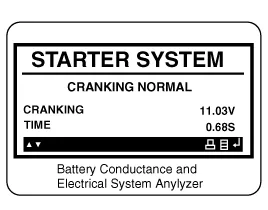 Der Tester zeigt die Werte des Startersystems, die Startspannung und