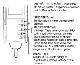 BACK/PRINT-Taste drücken, um die Testergebnisse auszudrucken oder MENU