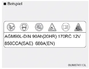 ❈ Die tatsächliche Batteriekennzeichnung im Fahrzeug kann von der Abbildung abweichen.