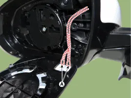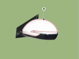 Befestigungsclips (A) trennen und Außenspiegelabdeckung (A) ausbauen.