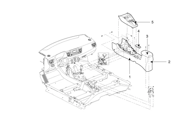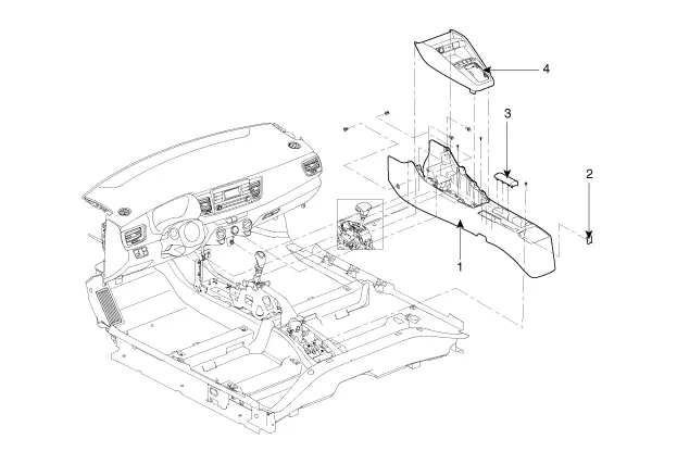 | 1. Bodenkonsolen 2. Hintere Konsolenabdeckung 3. Konsole der Armlehne |