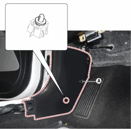 Vordere Türeinstiegsverkleidung (A) mit einem Ausbauwerkzeug entfernen.