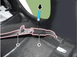 Untere B-Säulenverkleidung (A) mit einem Abzieher ausbauen.