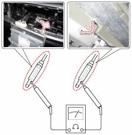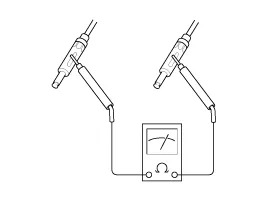Auf Durchgang zwischen den äußeren Polen des Antennenkabels prüfen. Es muss Stromdurchgang bestehen.