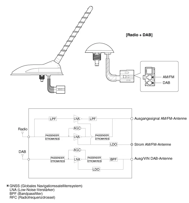 Steckverbinder der Dachantenne und der Radioantenne anschließen. |