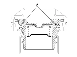 Per Sicht prüfen, ob Tankdeckel und -dichtung (A) verformt oder beschädigt sind.
