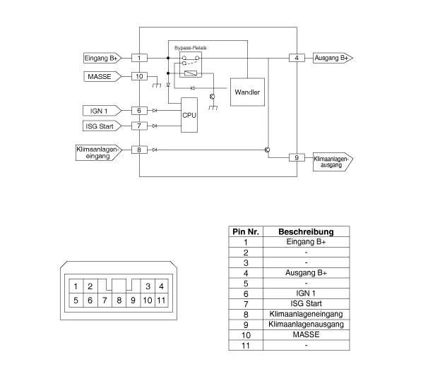 Im Umgehungsmodus wird die on-board-Versorgungsspannung nicht durch den DC/DC-Wandler, sondern direkt an die Ausgänge übertragen. In der Verstärkerphase wird die Fahrzeugspannung angepasst.
