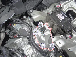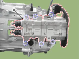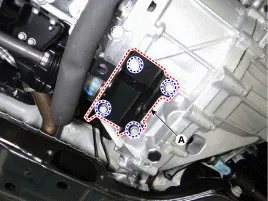 Befestigungsschrauben (A) der Getriebehalterung lösen.