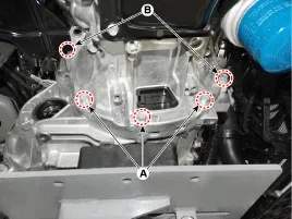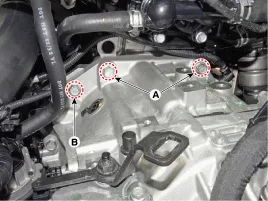 Untere Getriebebefestigungsschrauben (A, B) lösen.