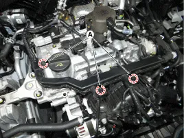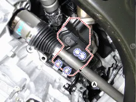 Abgaskrümmerstrebe (A) entfernen.