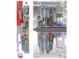 Sperrschalter-Steckverbinder (A) und Steckverbinder (B) des Eingangswellendrehzahlsensors abziehen. |