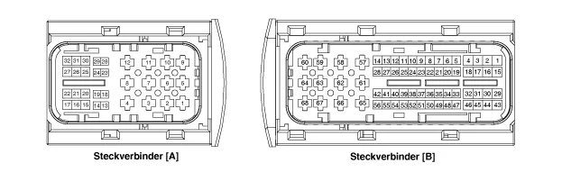 TCM-Steckverbindertest: TCM-Steckverbinder abtrennen und Masseklemmen auf TCM-Seite und auf Kabelstrangseite per Sichtprüfung auf verbogene Klemmen oder unzureichenden Kontakt kontrollieren. |