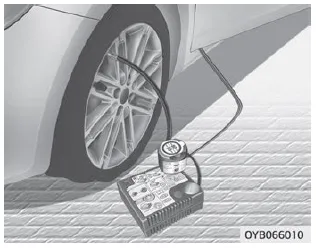 Vermeiden Sie aus diesem Grund abrupte Lenkbewegungen und andere kritische Fahrmanöver, besonders wenn das Fahrzeug stark beladen ist oder wenn Sie einen Anhänger ziehen. Das TMK ist nicht für eine dauerhafte Reifeninstandsetzung vorgesehen und es kann nur für einen Reifen verwendet werden.
