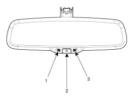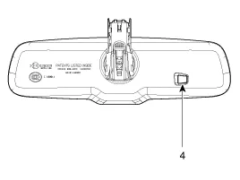 Das ECM wird auf das vom nach hinten weisenden Sensor bestimmte Niveau abgedunkelt. Wenn keine Blendung mehr erkannt wird, ist die Funktion deaktiviert. (1. LED-Kontrollleuchte, 2 EIN/AUS Schalter 3. Nach hinten gerichteter Sensor 4 Vorwartsgerichteter Sensor)