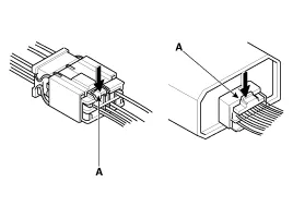 Alle Stecker besitzen eine Verriegelung (A), die durch Drücken entriegelt wird.