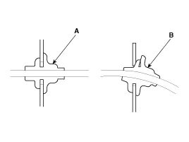 berprüfen, dass der Halter (A) und die Gummidichtringe (B) nicht lose sind.