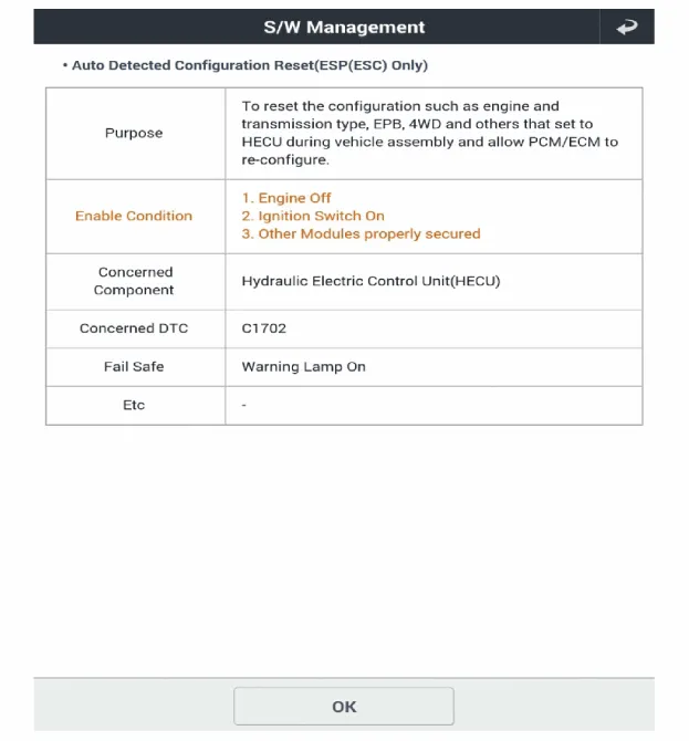"Fahrzeugmodell" und "ABS/ESC" auf dem KDS-Auswahlbildschirm wählen, dann OK drücken.