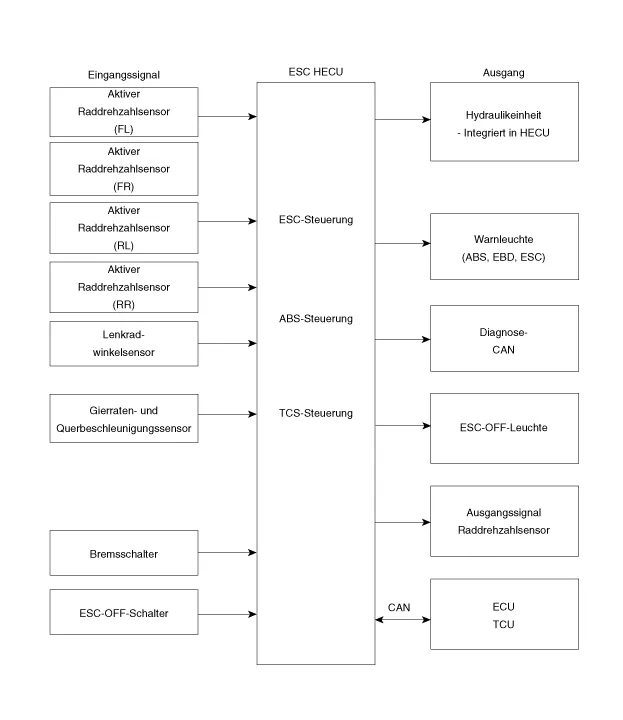 Der ESC-Ein-/Ausschalter wird verwendet, um die ESC-Funktion zwischen den Zuständen Ein/Aus basierend auf dem vom Fahrer eingegebenen Eingangssignal umzuschalten.