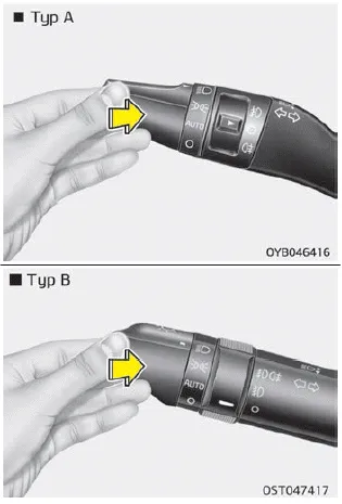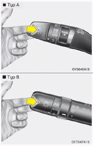 Um die Lichthupe zu betätigen, ziehen Sie den Lichtschalterhebel auf sich zu. Wenn Sie ihn loslassen, kehrt er in seine ursprüngliche Stellung (Fahrlicht) zurück. Um die Lichthupe bedienen zu können, muss das Licht nicht eingeschaltet sein.