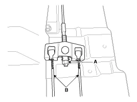 Feststellbremszug (A) anbringen, dann Clip (B) befestigen.