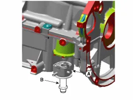 Befestigungsschrauben (A) lösen und danach Ölkühlereinheit (B) ausbauen.