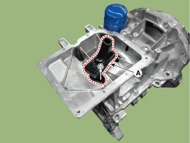 Ölwanne (A) einbauen. Schrauben gleichmäßig in mehreren Arbeitsschritten anziehen.