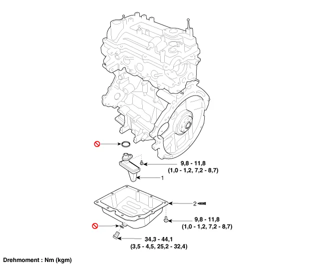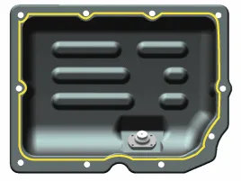 Flüssigdichtung vor dem Einbau auf die untere Ölwanne auftragen. Das Teil muss innerhalb von 5 Minuten nach dem Auftragen des Dichtmittels montiert werden.