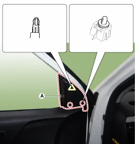 Innenabdeckung (A) des Vordertür-Dreieckfensters mit einem Ausbauwerkzeug abnehmen.