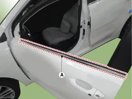 Reparaturverfahren AUS- UND EINBAU 1. Befestigungsschraube des Vordertürfeststellers (A) lösen. Anzugsdrehmoment: 19,6 ~ 29,4 Nm (2,0 ~ 3,0 kgm) 2.