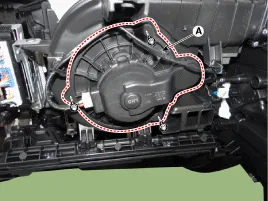 Schrauben lösen und Gebläsemotor (A) ausbauen.