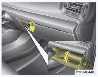 Um das Handschuhfach zu öffnen, drücken Sie die den Griff. Das Handschuhfach öffnet sich danach automatisch. Schließen Sie das Handschuhfach nach Gebrauch.