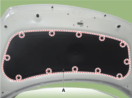 Mit einem Clipentferner die Clips lösen und die Motorhauben-Dämpferplatte (A) ausbauen.
