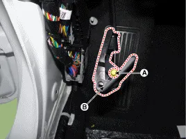Haubenverriegelungszug (A) abtrennen und Haubenverriegelungsgriff (B) ausbauen.