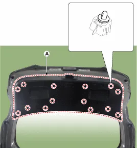Heckklappenverkleidung (A) mit dem Ausbauwerkzeug entfernen.