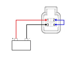 Batteriespannung (+) an Klemme 1 und Batteriemasse (-) an Klemme 3 anlegen. |